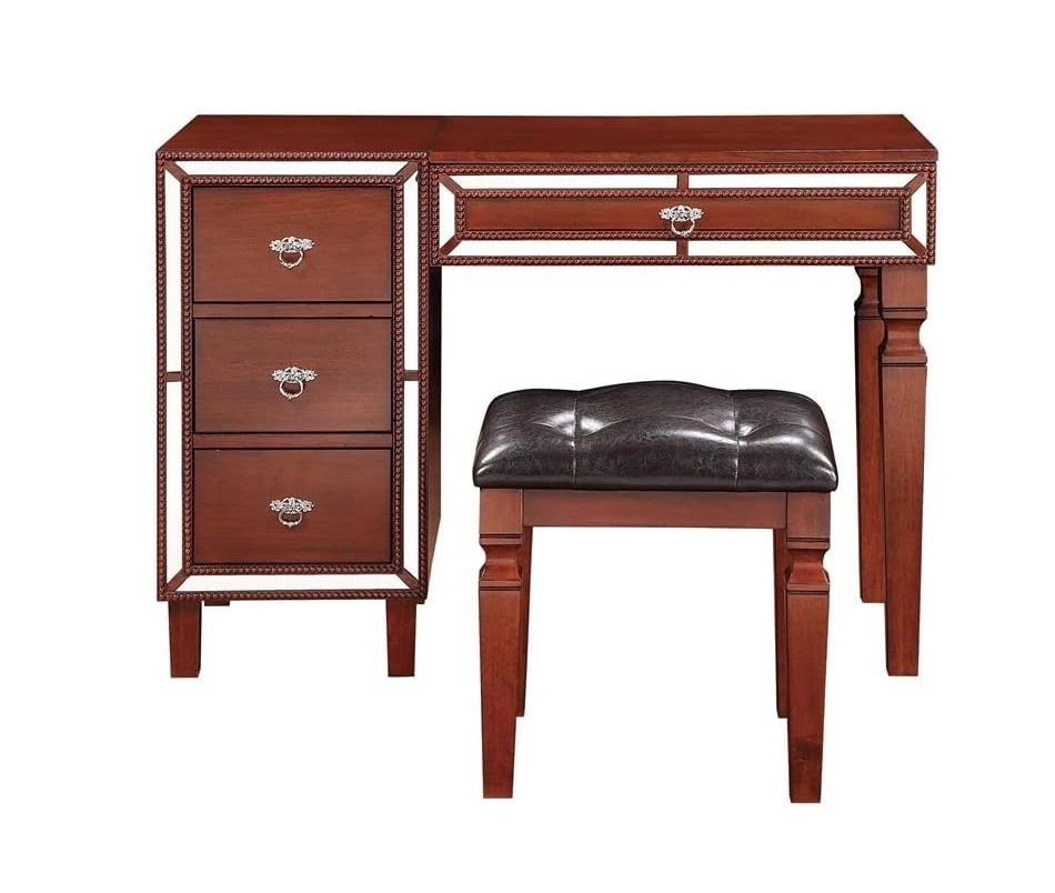 Traditional Formal Cherry Color Vanity Set w Stool Storage Drawers 1pc Bedroom Furniture Set Tufted Seat Stool