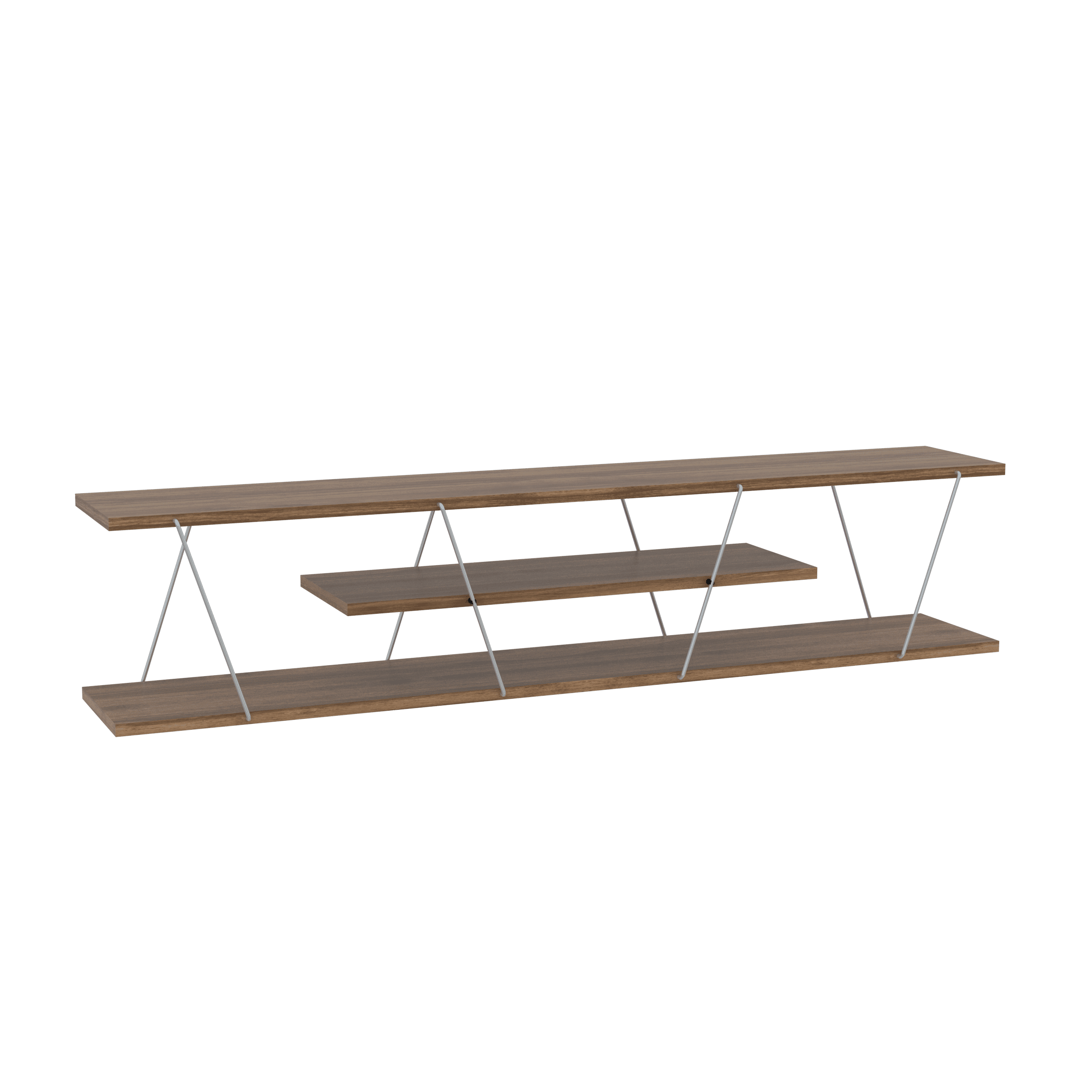 The mid century modern design of this wooden TV Stand will change the mood in your living rooms. High quality melamine coated chipboard and colorful metal wire connections combine to bring elegance to your living rooms. 4 shelves under the unit provides huge space your media entertainment and books. Cable management is also available to easily connect your devices to your television. With the color alternatives and elegant design it is suitable for every room. All of our products are being manufactured with ultimate care and ensured to be quality checked for best customer experience and satisfaction. Dimensions: 56" W 12" H 12" D