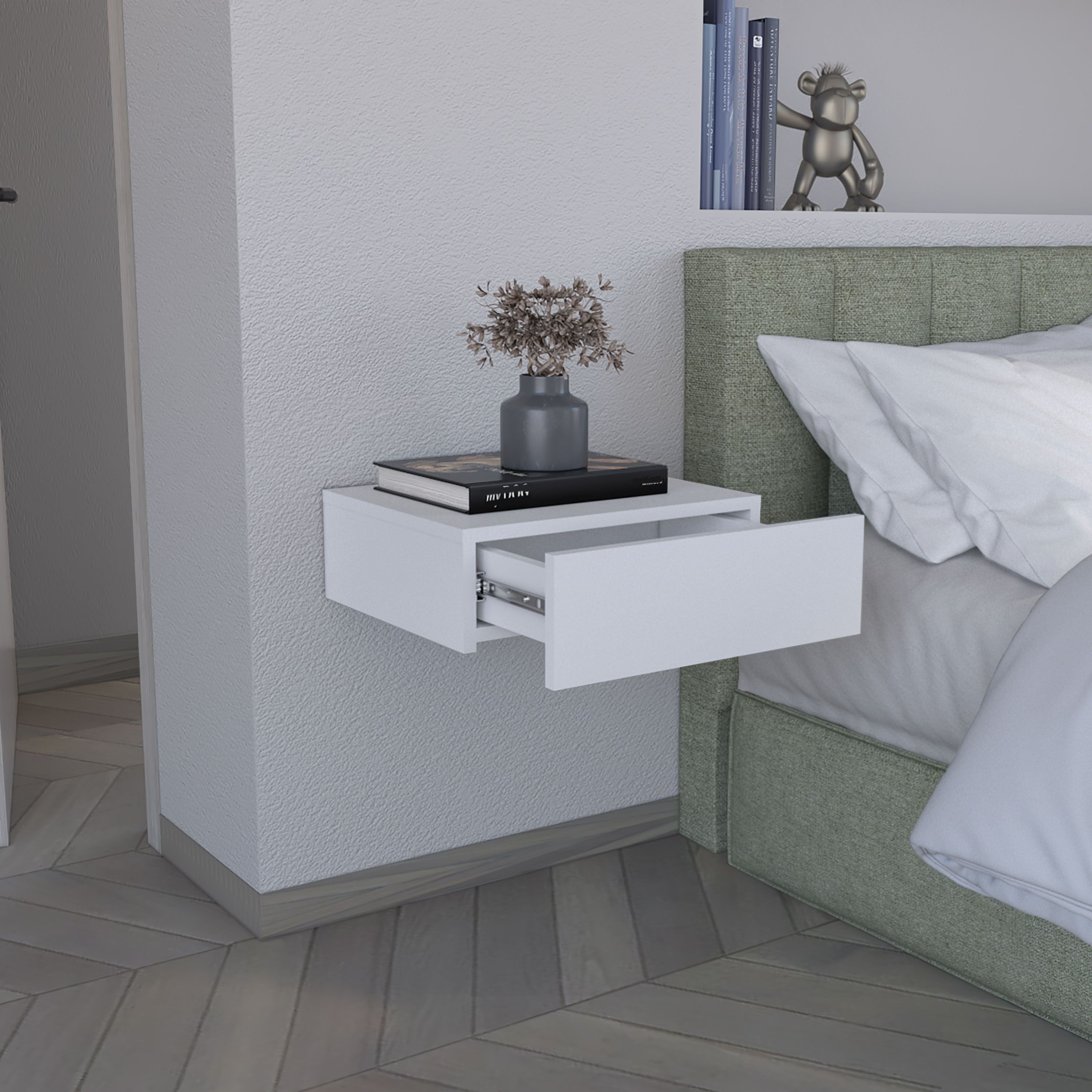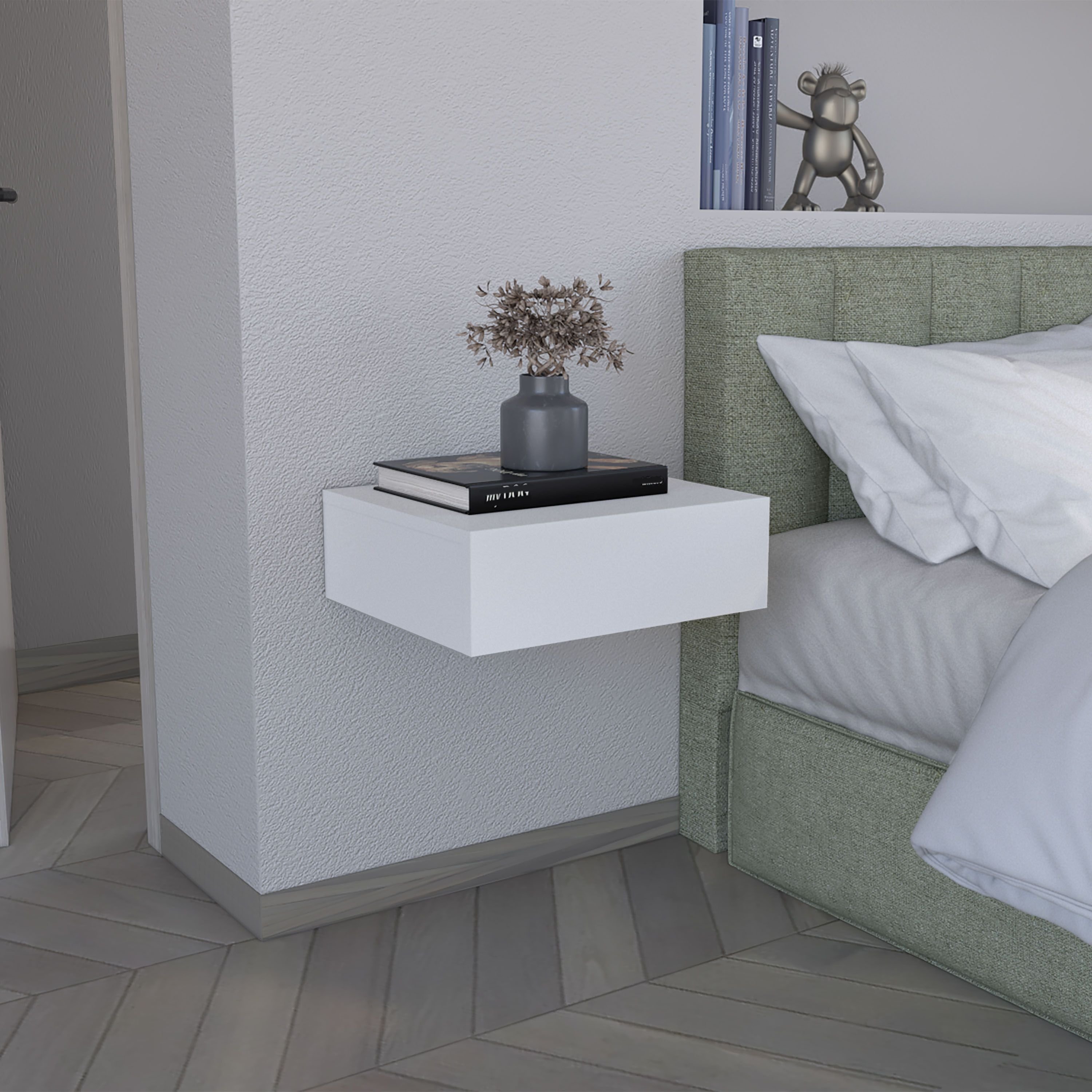 Home > Floating Nightstand 5"H, Modern Wall-Mounted Bedside Shelf with Drawer, White