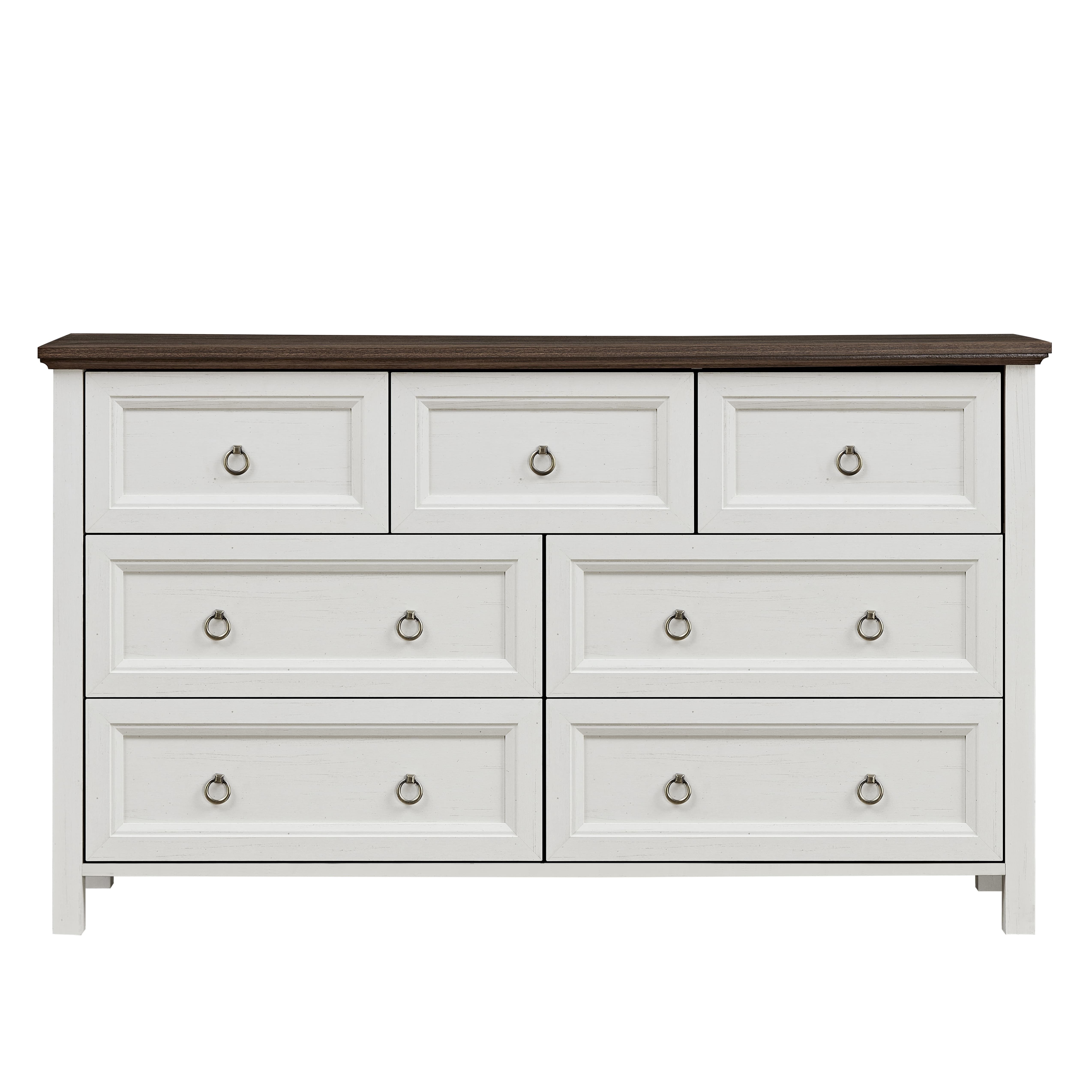 [Metal Slides and Round Knobs 7 Drawers Slide Easily Spacious drawers provide ample storage space, ideal for organizing clothing, linens, and other essentials in any room. Its metal round drawer pulls in an antique brass tone complete the vintage French country style.