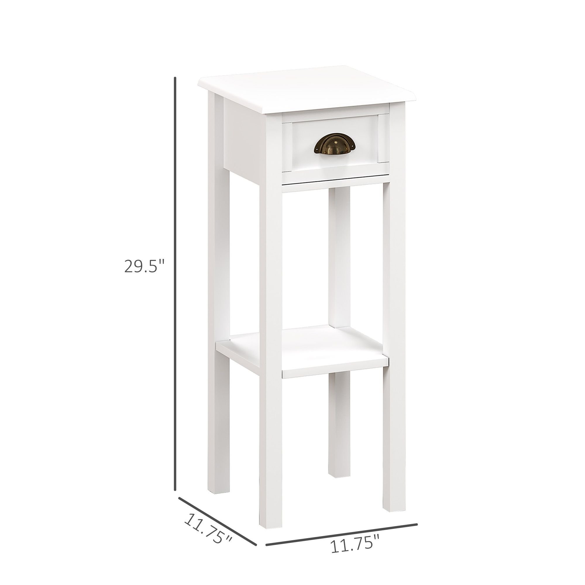 Add a beautiful accent piece to your home while giving yourself extra storage with this narrow end table from HOMCOM. Place the end table in your living room or hallway to hold items you use daily or as a decorative display shelf. The drawer allows you to store small objects without getting lost. It's compact enough to fit between those tiny spaces between your couch or the wall. Add elegance and some extra storage with HOMCOM.