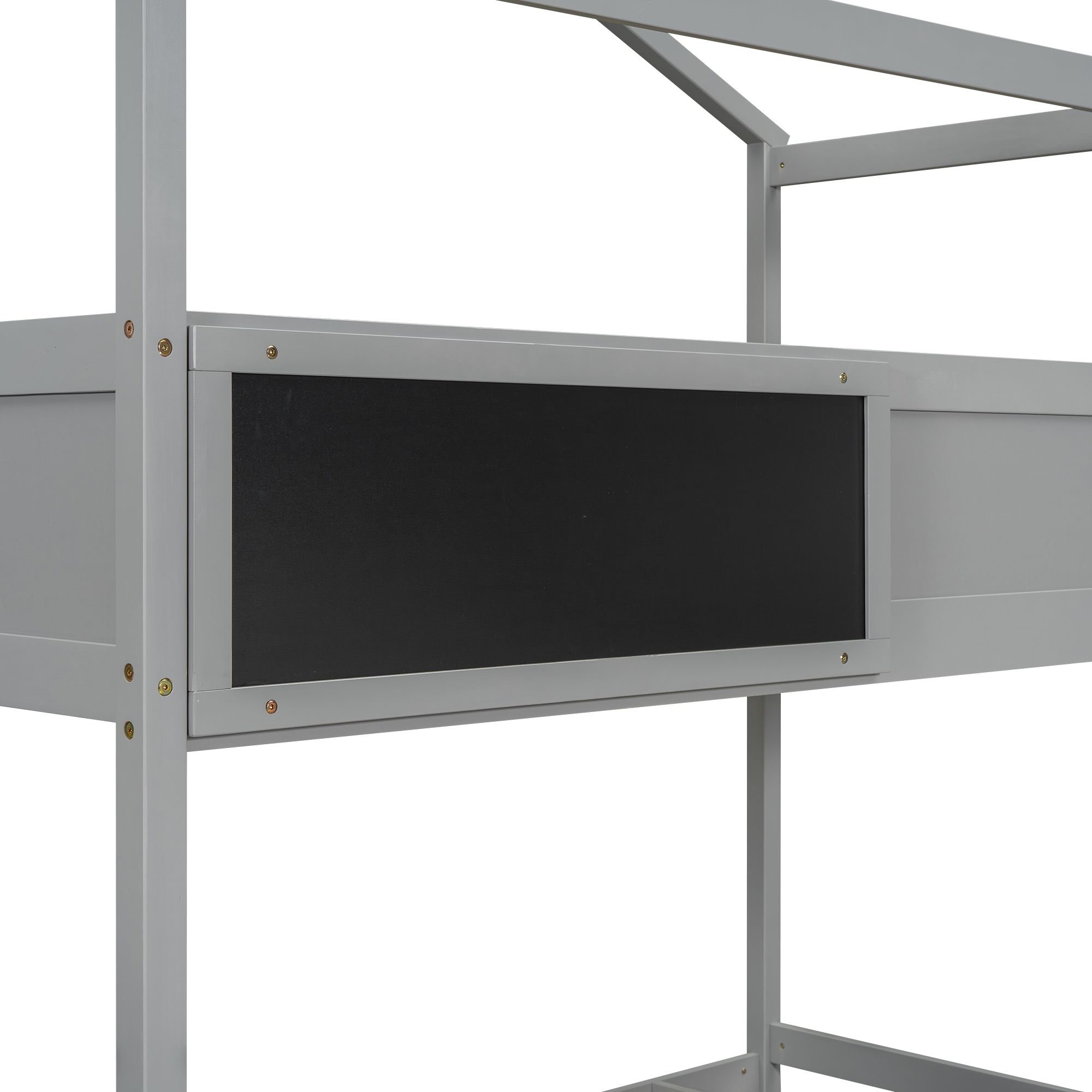 Twin over Full House Bunk Bed with Storage Staircase and Blackboard