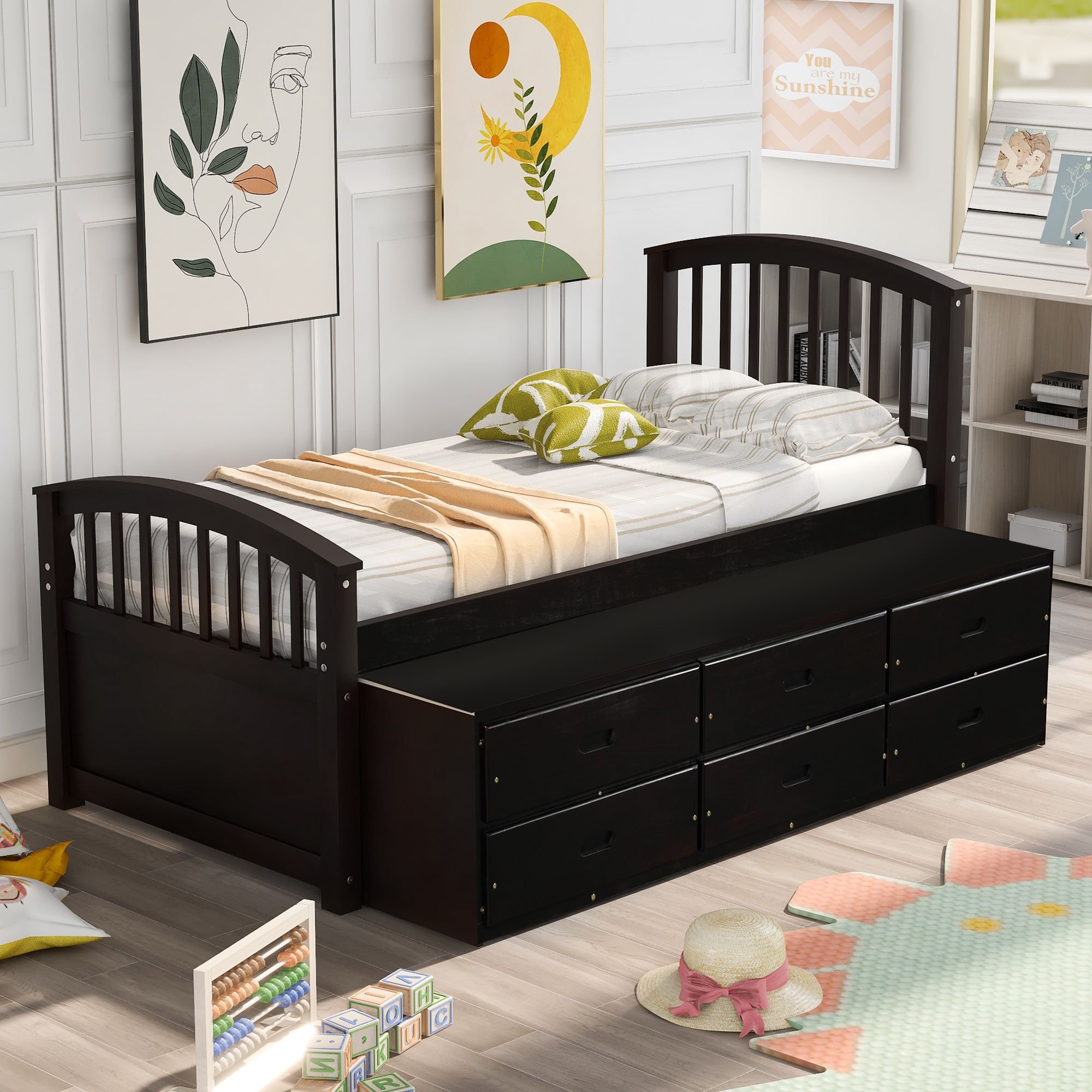 Home > Twin Size Platform Storage Bed Solid Wood Bed with 6 Drawers